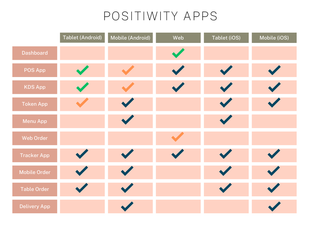 Walk-In POS Order, Phone Order, Web Order, Mobile Order, and Server Table Order